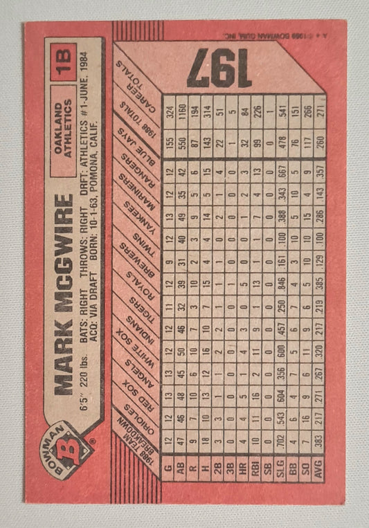 Mark McGwire - 1969 Bowman "Gum" Card MLB Baseball Oakland Athletics #197