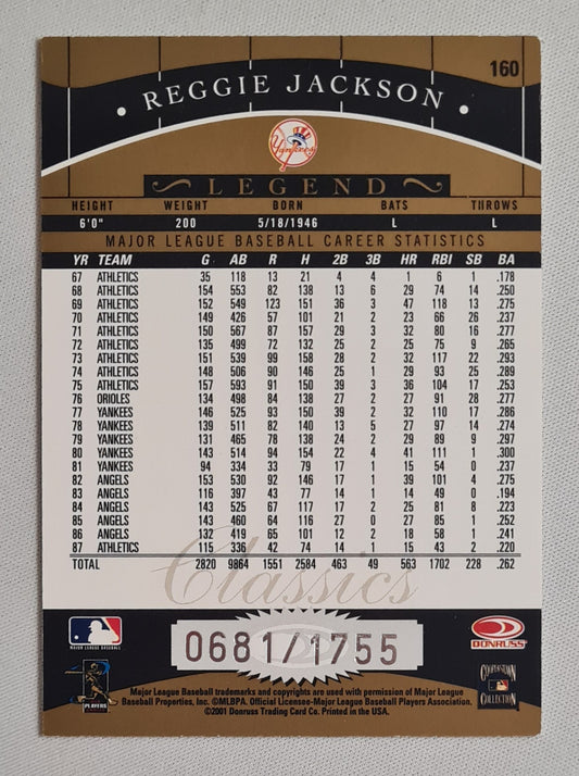 Reggie Jackson - 2001 Donruss Trading Card MLB Classics Legend NY Yankees #160 /1755