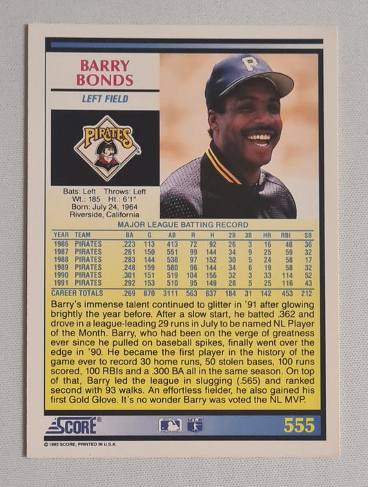 Barry Bonds - 1992 Score MLB Baseball Pirates #555
