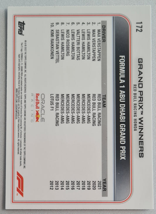 Max Verstappen - 2022 Topps Chrome - Abu Dhabi Red Bull Racing Honda - Sapphire