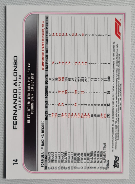 Fernando Alonso - 2022 Topps Chrome F1 Checker Flag Refractor #14