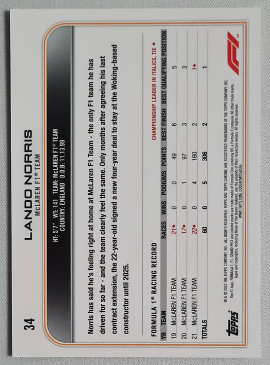 Lando Norris - 2022 Topps Chrome F1 Black and White Raywave #34