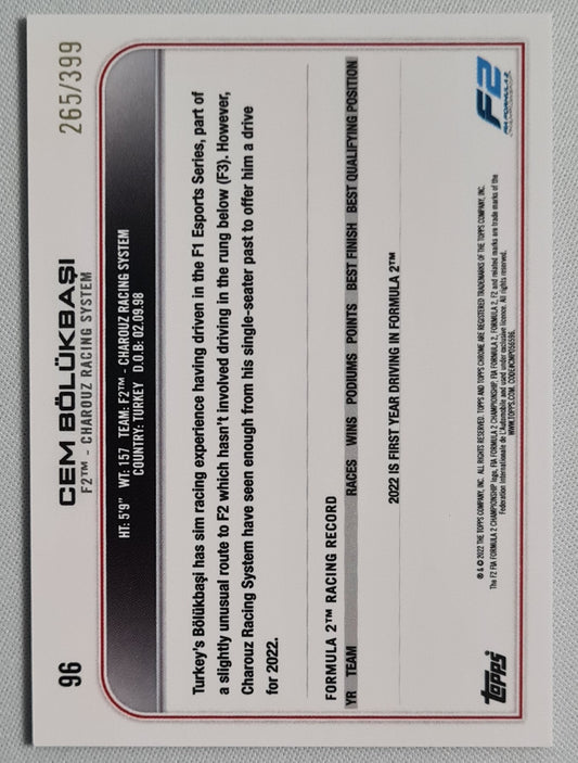 Cem Bolukbasi - 2022 Topps Chrome F2 Formula Racing #96 Purple Refractor /399