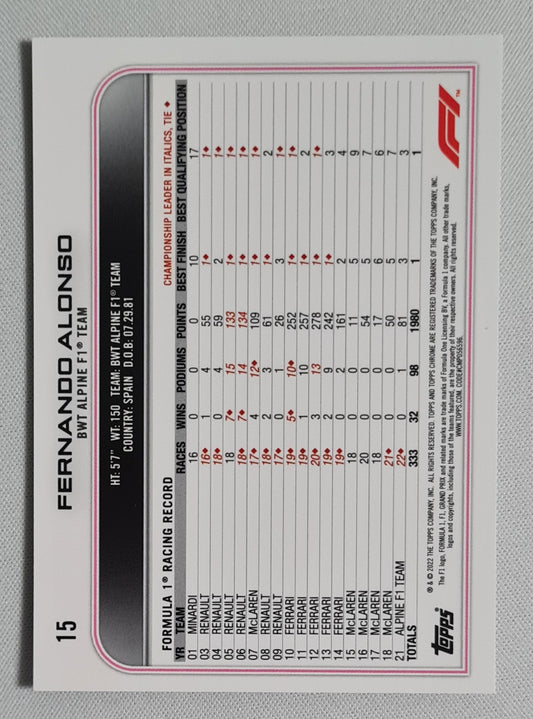 Out of StockFernando Alonso - 2022 Topps Chrome BWT Alpine #15
