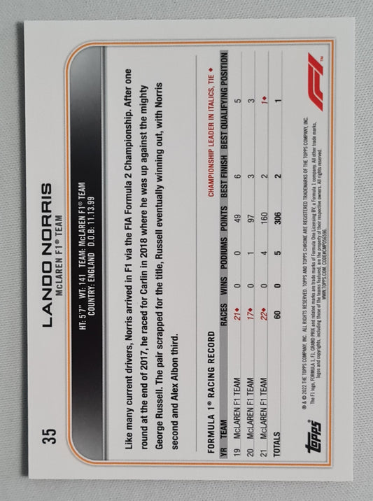Lando Norris - 2022 Topps Chrome F-1 McLaren F1 Team # 35 Black & White Ray Wave