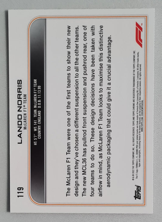 Lando Norris - 2022 Topps Chrome F-1 McLaren F1 Team # 119 Black & White Ray Wave