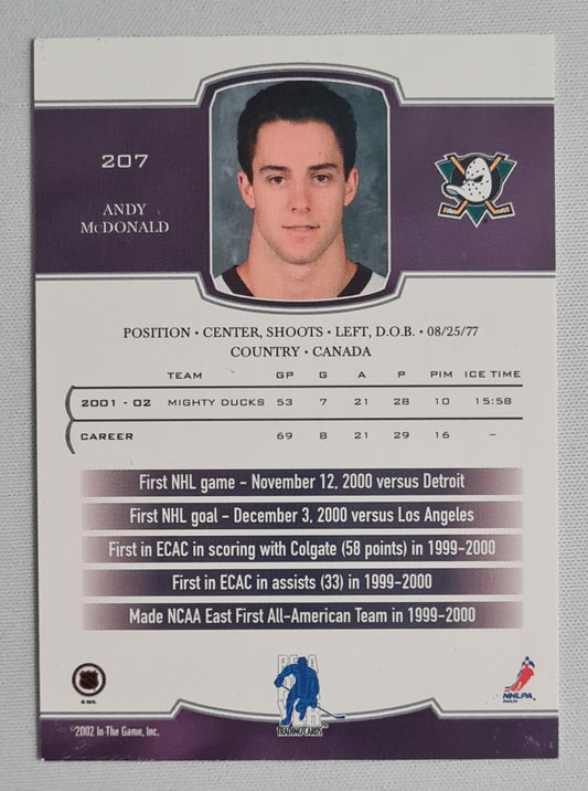 Andy McDonald - 2002 Be a Player Trading Cards - In the Game - First Edition Mighty Ducks #207