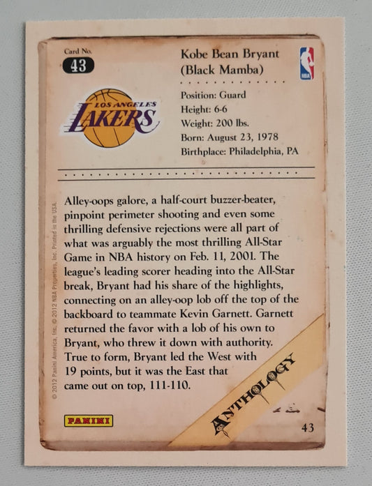 Kobe Bean Bryant - 2012 Panini Anthology NBA Basketball L.A. Lakers #43