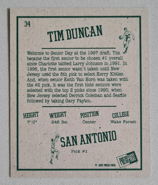 Tim Duncan - 1997 Press Pass #34 San Antonio Pick #1 "Retroactive"