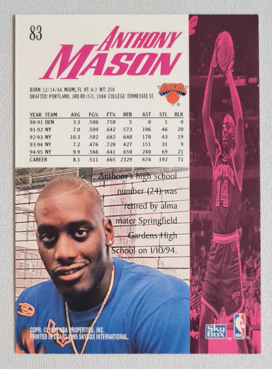 Anthony Mason - 1995 Skybox #83 NY Knicks - Gold logo