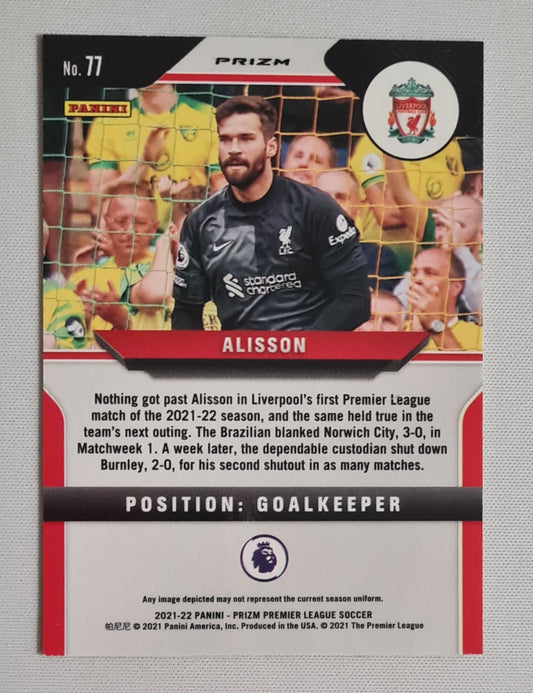 Alisson - 2021/22 Panini Prizm Premier League Soccer Liverpool Prizm #77 Red, White, Blue Prizm