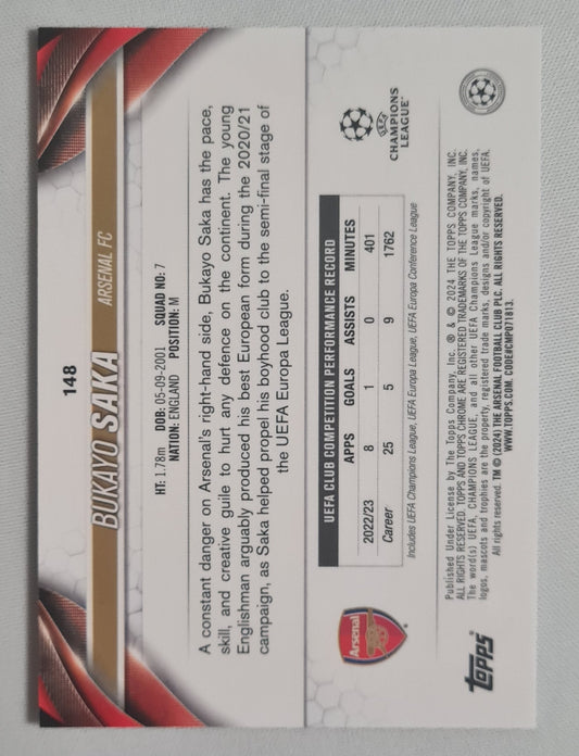 Bukayo Saka - 2023/24 Topps Chrome UEFA Pink Geometric /250 #148 Arsenal FC