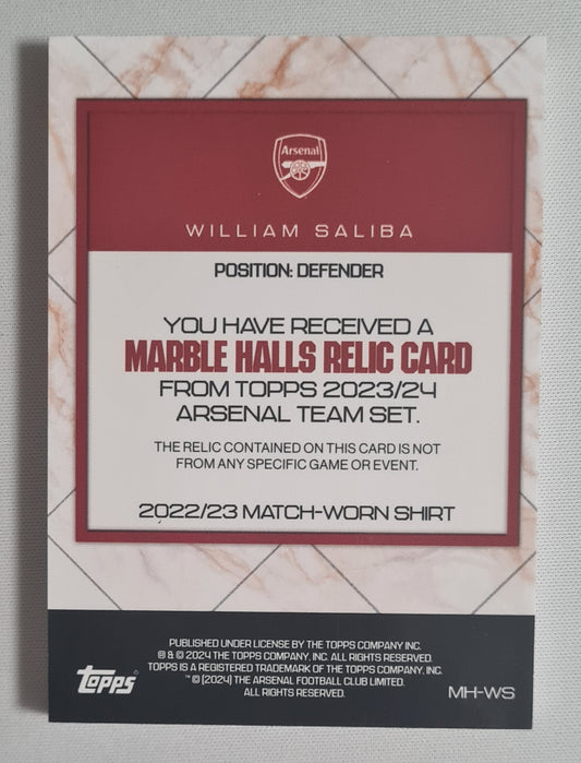 William Saliba - 2023/24 Topps Arsenal Team Set Marble Halls Relic Patch #MH-WS Arsenal