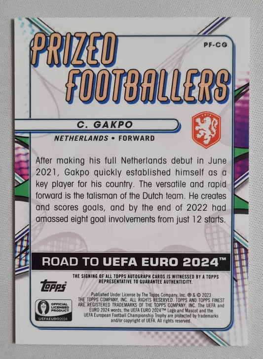 Cody Gakpo - 2023 Topps Finest Road to UEFA Euro 2024 Prized Footballers Auto /350 #PF-CG Netherlands