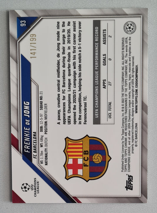 Frenkie de Jong - 2021/22 Topps Chrome UCL Aqua /199 #93 FC Barcelona