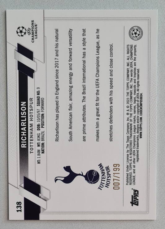 Richarlison - 2023 Topps Tottenham Hotspur (CL) #138 Aqua /199