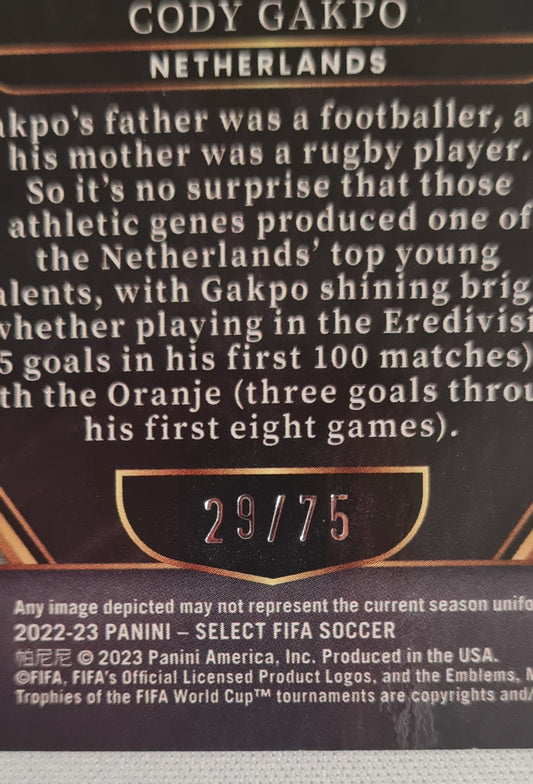 Cody Gakpo - 2022/23 Panini Select FIFA Soccer Prizm Purple Mezzanine #156 /75