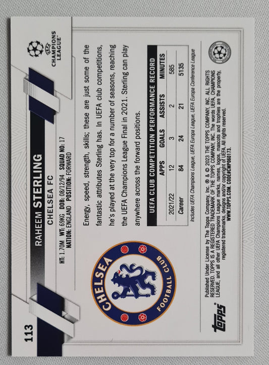 Raheem Sterling - 2023 Topps Chrome #113 (CL) Chelsea FC Purple Gold Siesmic