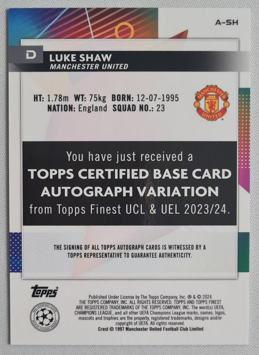 Luke Shaw - 2024 Topps Finest Man United CL /150 Autograph - Sky Blue