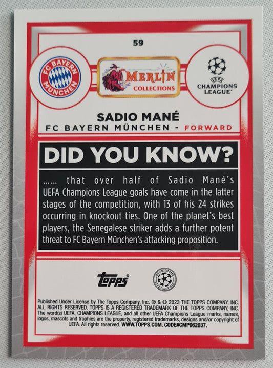 Sadio Mane - 2023 Topps Merlin Champions League #59 Aqua Prism - FC Bayern Munchen