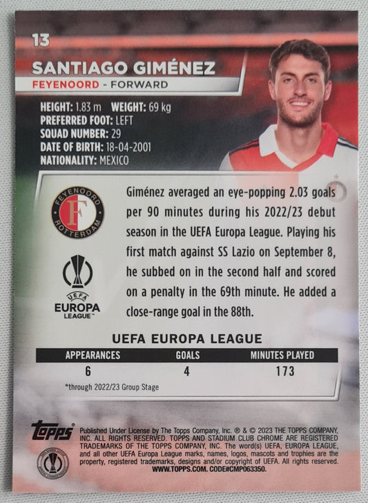 Santiago Gimenez - 2023 Topps Stadium Chrome (RC) - Feyenoord