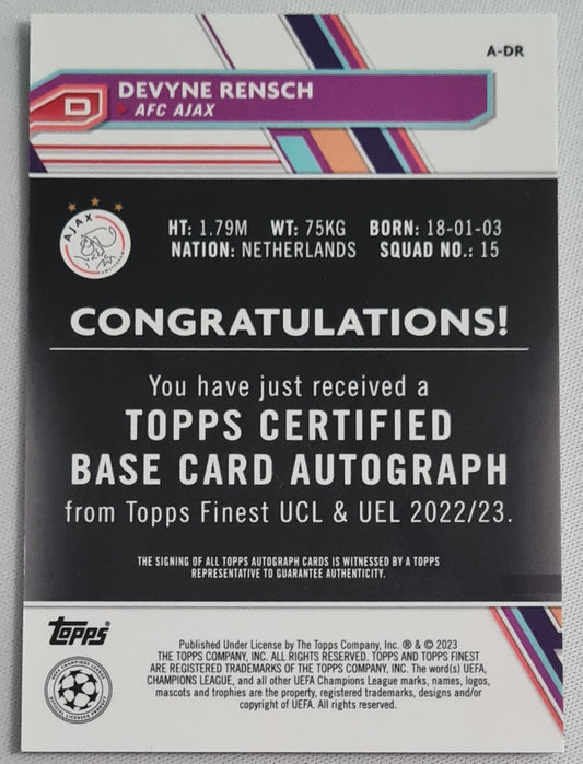 Devyne Rensch - 2023 Topps Finest - Ajax Amsterdam /Auto