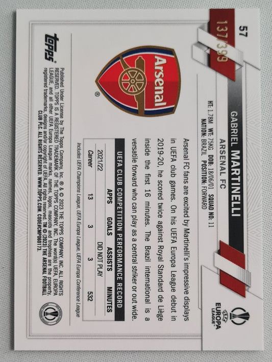 Gabriel Martinelli - 2023 Topps Chrome - Arsenal FC - Green Checkers /399