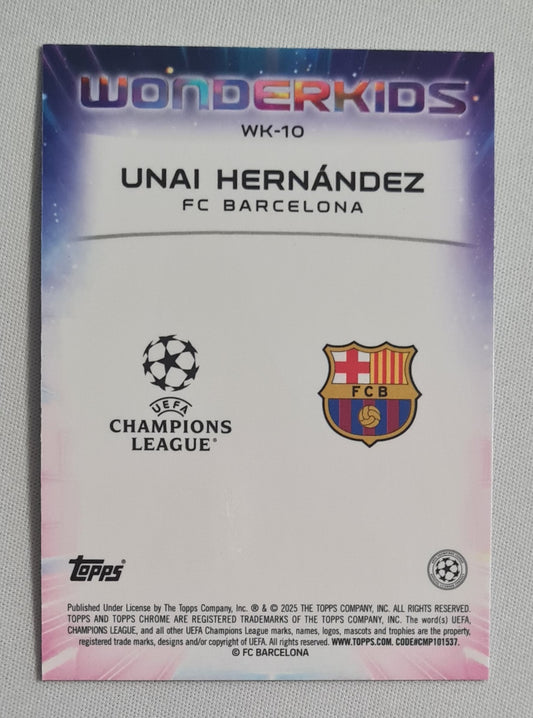 Unai Hernandez - 2025 Topps Chrome Wonderkids (RC) FC Barcelona (CL) #WK-10