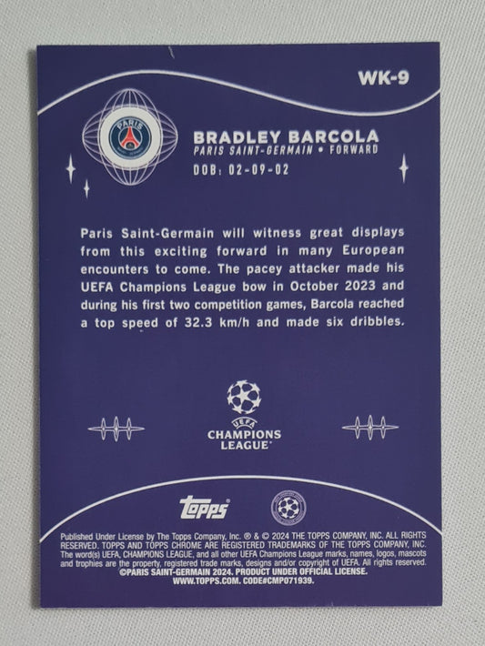 Bradley Barcola - 2024 Topps Chrome Wonderkids (RC) Paris PSG (CL) #WK-9