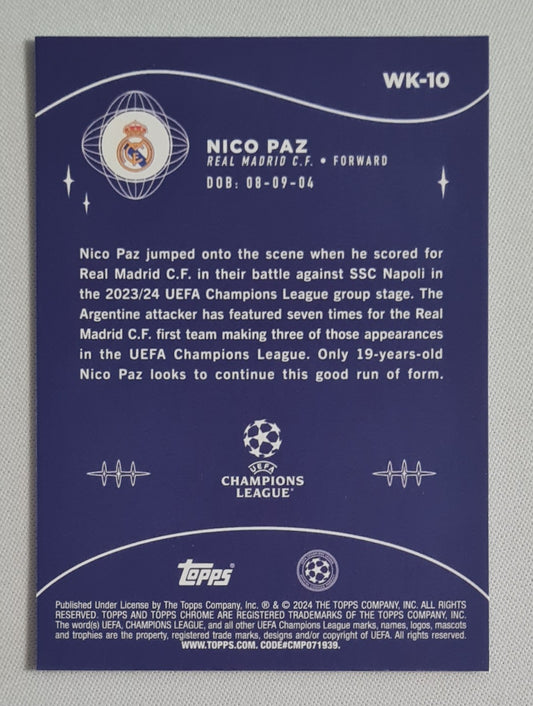 Nico Paz - 2024 Topps Chrome Wonderkids (RC) Real Madrid (CL) #WK-10