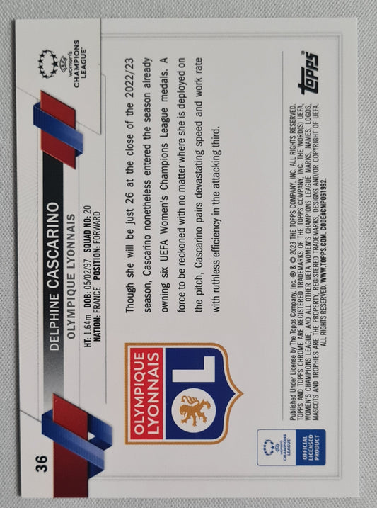 Delphine Cascarino - 2023 Topps Chrome #36 (RC) Olympique Lyonnais (CL) Aqua Refractor