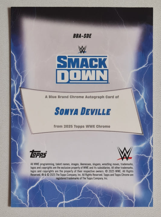 Sonya Deville - 2025 Topps Chrome WWE Blue Brand on card Auto - Orange Geometric /50