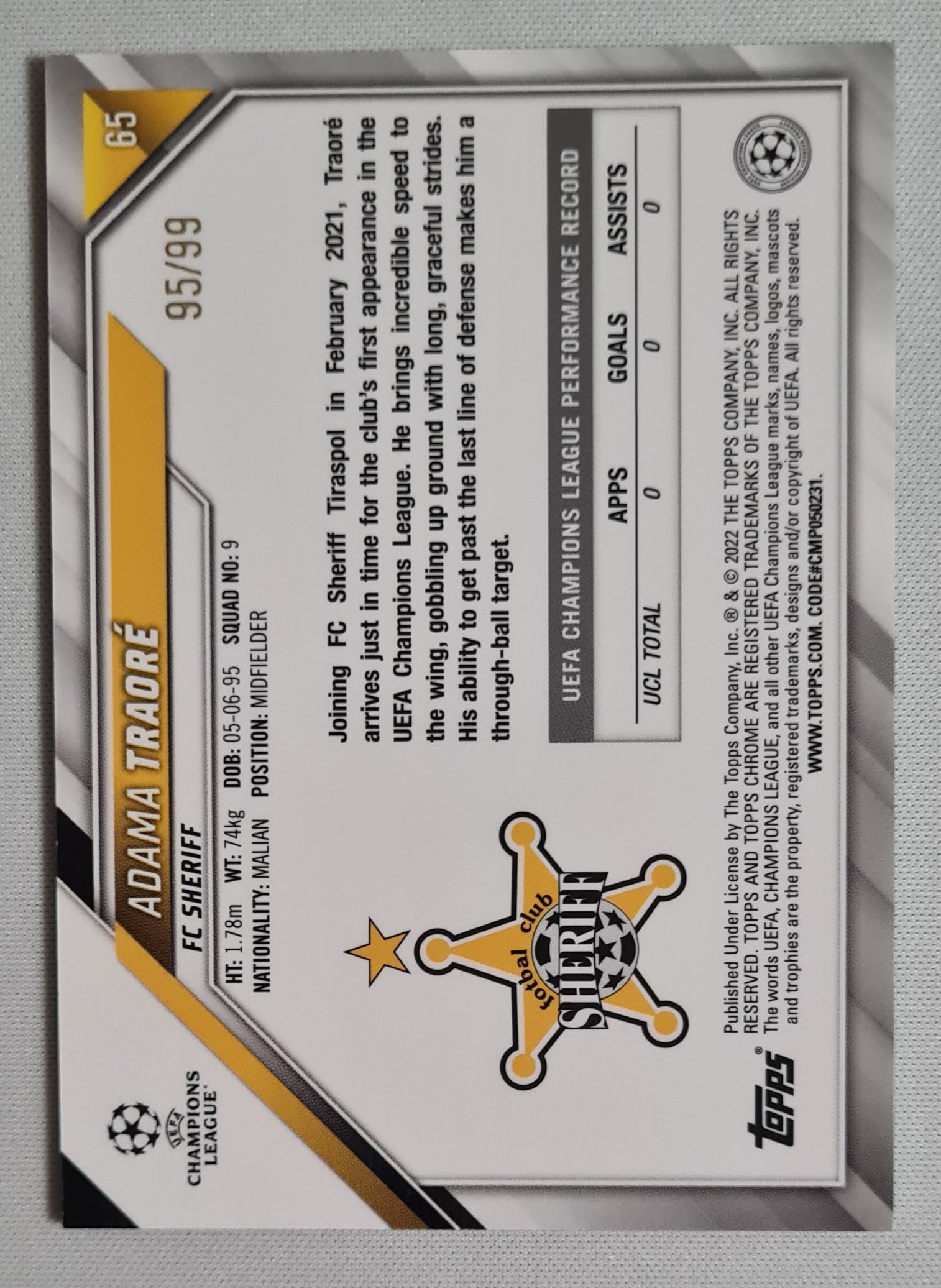 Adama Traore - 2022 Topps Chrome Champions League (RC) FC Sheriff #65 /99 Green