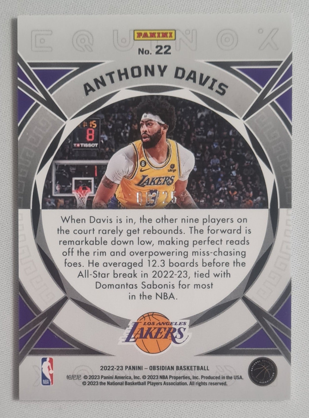 Anthony Davis - 2022/23 Panini Obsidian Basketball NBA LA Lakers #22 Green Equinox /25