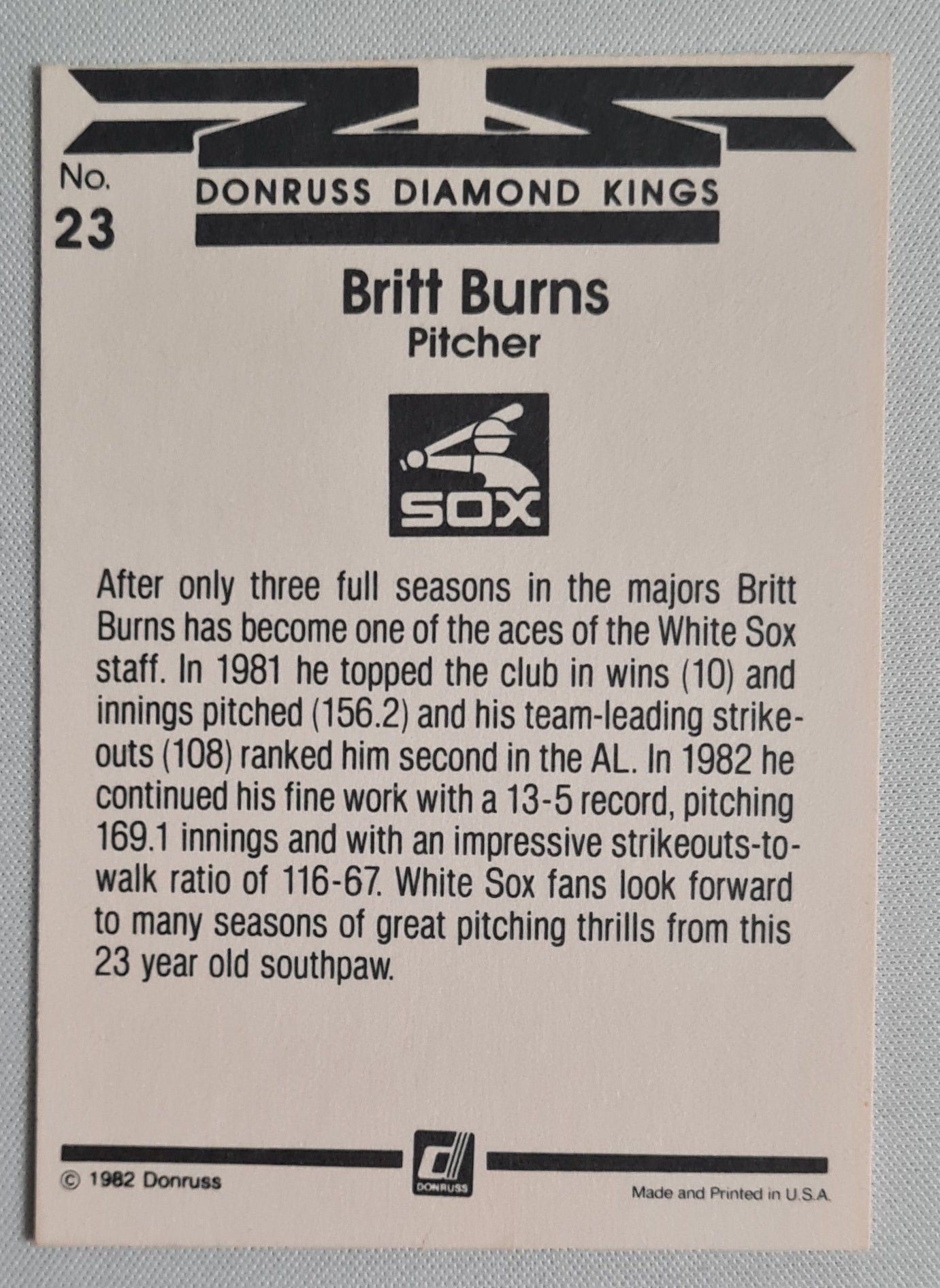 Britt Burns - 1982 Donruss Diamond Kings White Sox #23