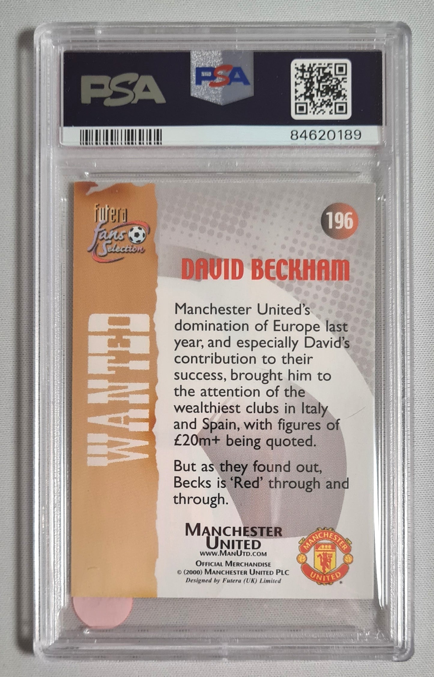 David Beckham - 2000 Futera Fans Selection WANTED Foil PSA 8 #196 Manchester United