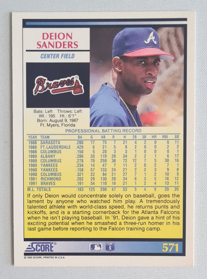 Deion Sanders - 1992 Score MLB Baseball Atlanta Braves #571
