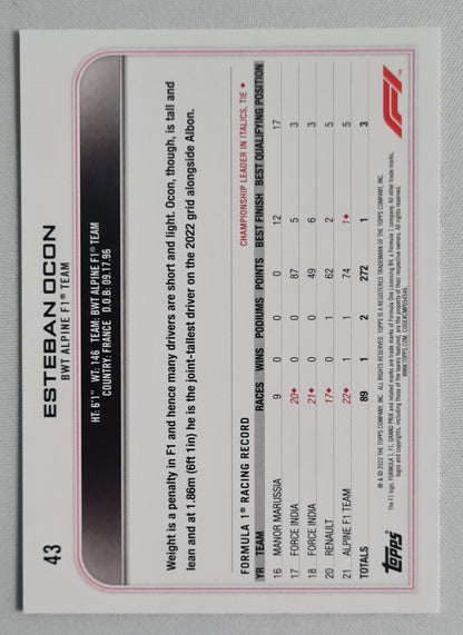 Esteban Ocon - 2022 Topps F-1 BWT Alpine Formula One Team #43 checker