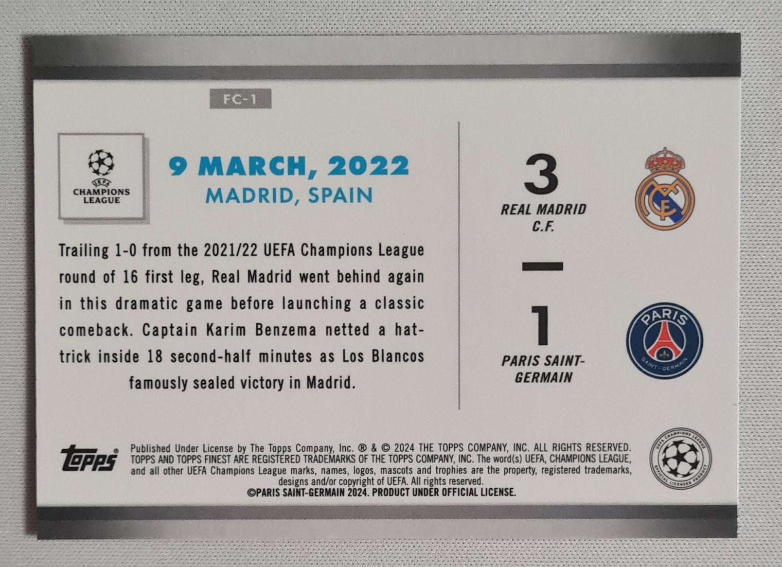 Featuring Benzima - 2024 Topps Finest "Comebacks" FC-1 - Real Madrid vs PSG Holo