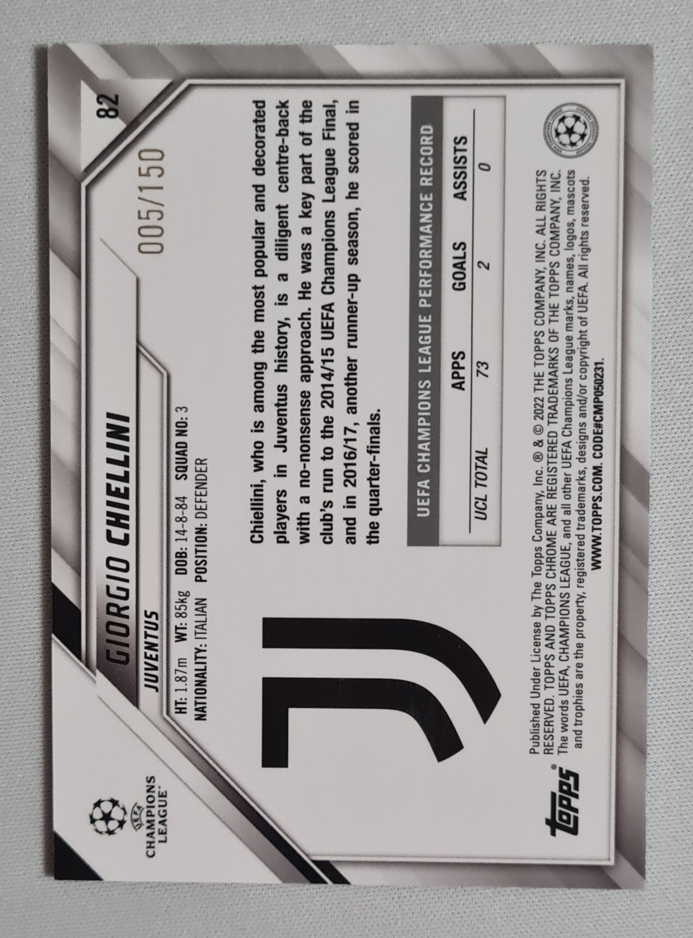 Giorgio Chiellini - 2022 Topps Chrome Champions League Juventus #82 /150 Blue