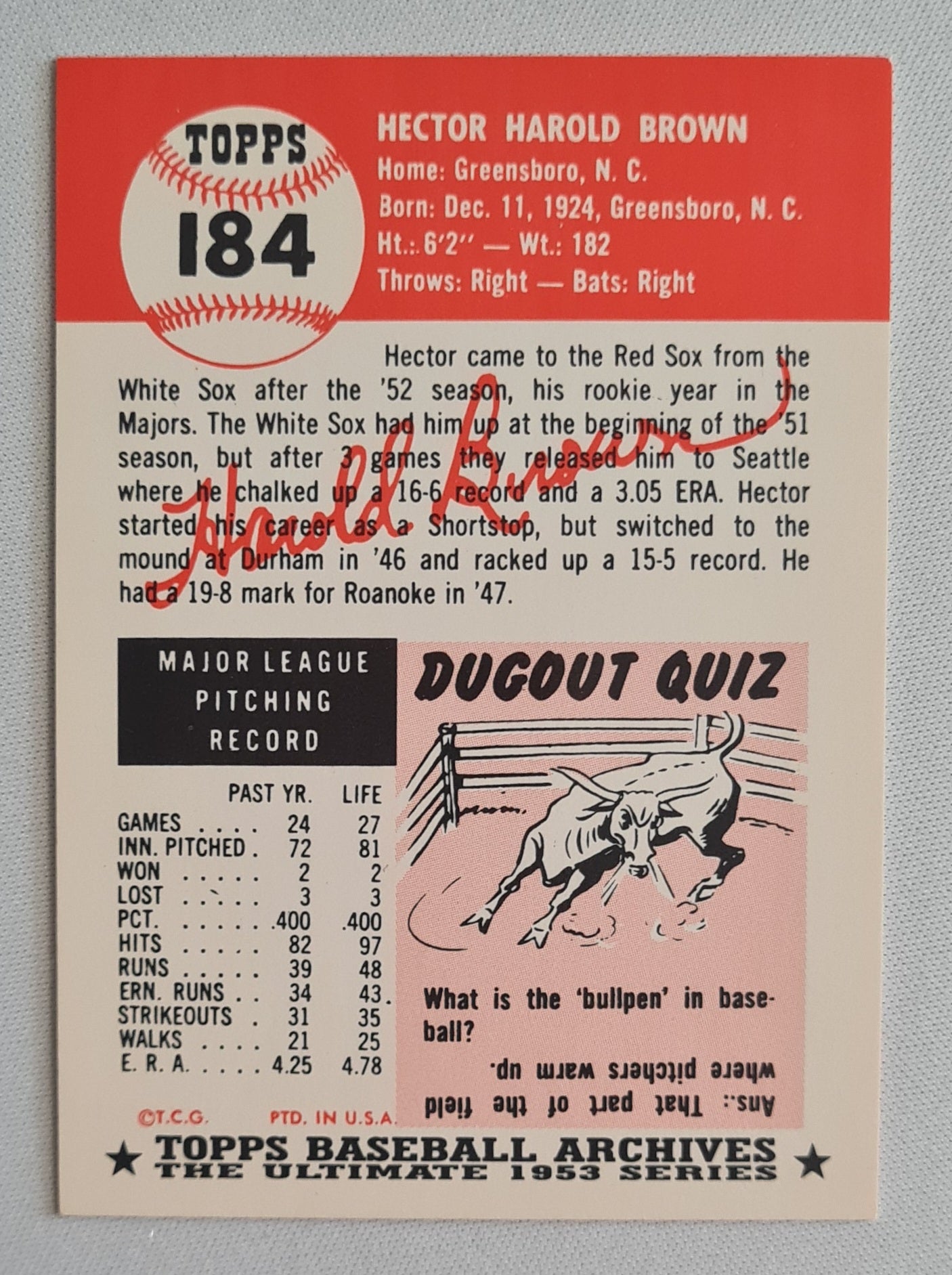 Hal Brown - 1991 Topps MLB Baseball Boston Red Sox #184