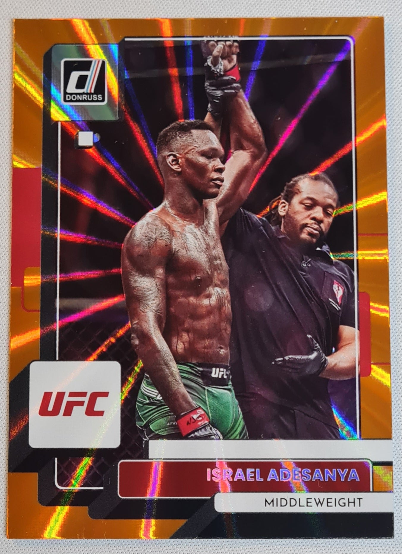 Israel Adesanya - 2023 Panini Donruss Orange Laser #102 UFC SP