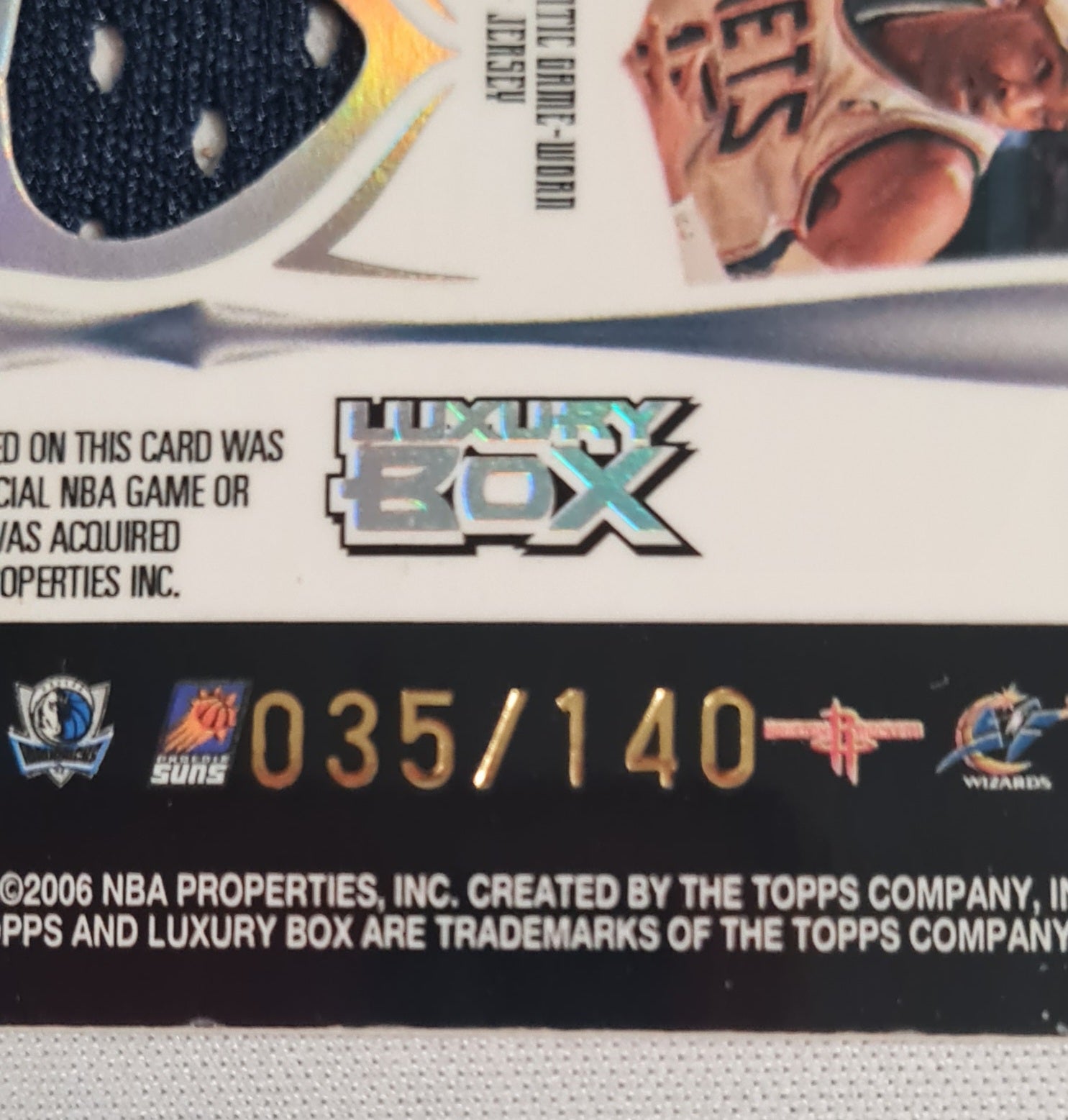 2006 Topps Luxury Box Card - Featuring Game/Eveny Worn Material