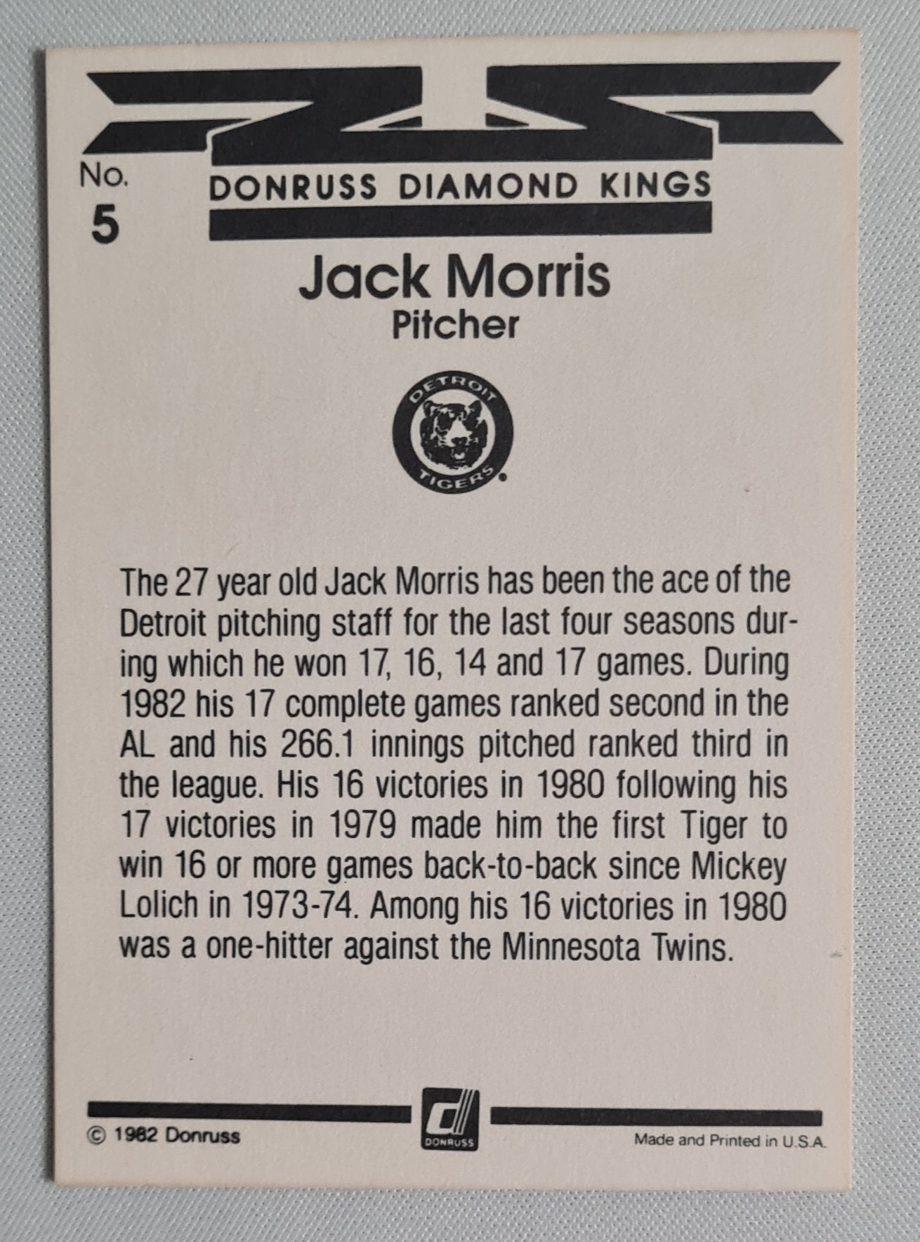 Jack Morris - 1982 Donruss Diamond Kings Tiger #5