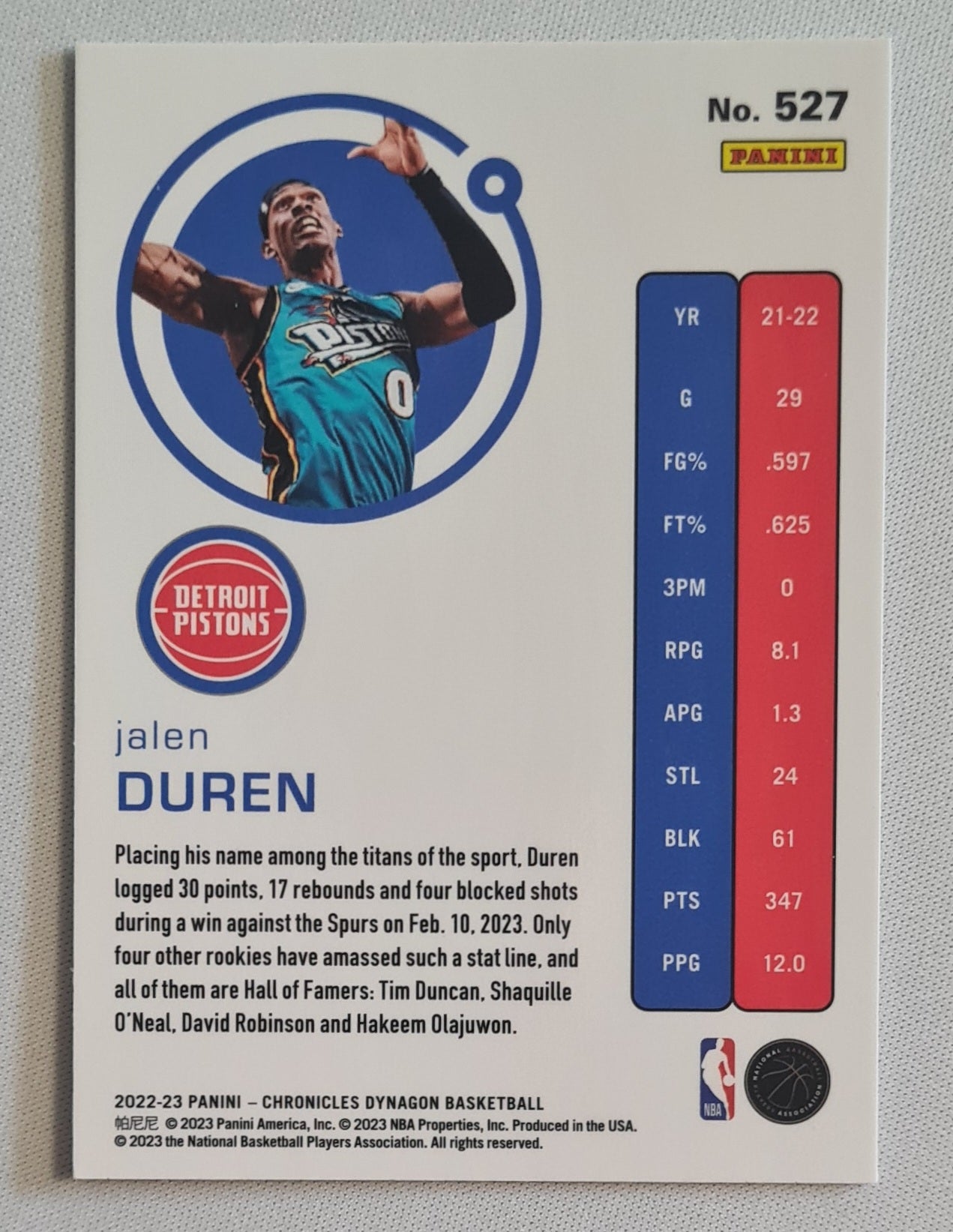 Jalen Duren - 2022/23 Panini Chronicles Dynagon Basketball NBA Detroit Pistons #527