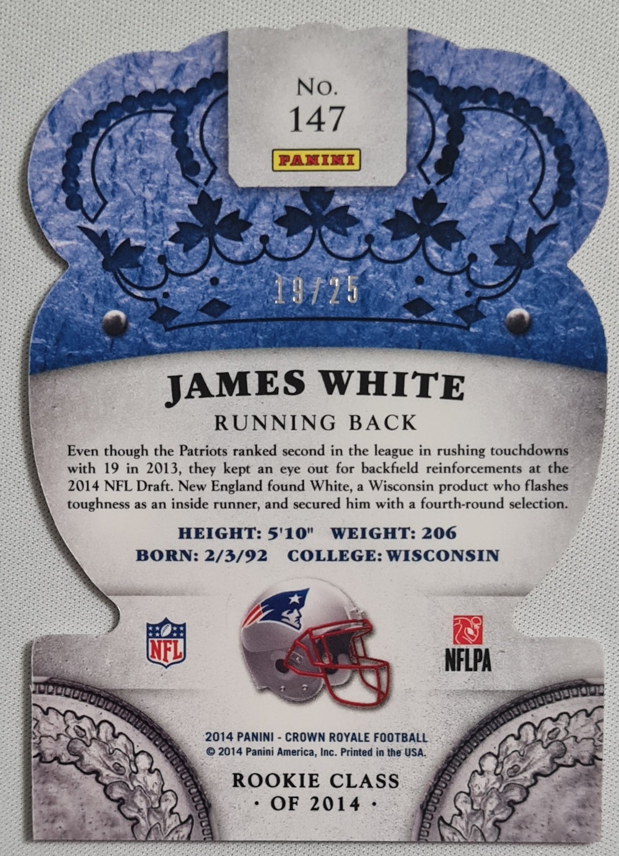 James White - 2014 Panini Crown Royale Football * Rookie Class of 2014 * /25 GOLD Die Cut