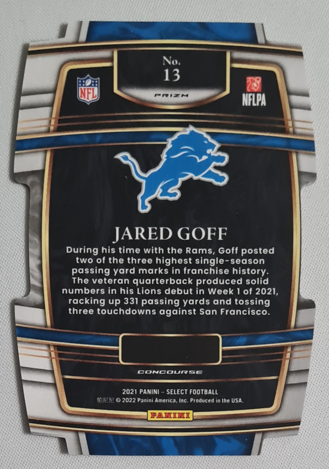 Jared Goff - 2021 Panini Select Football NFL Lions #13 Tri Color Die-Cut