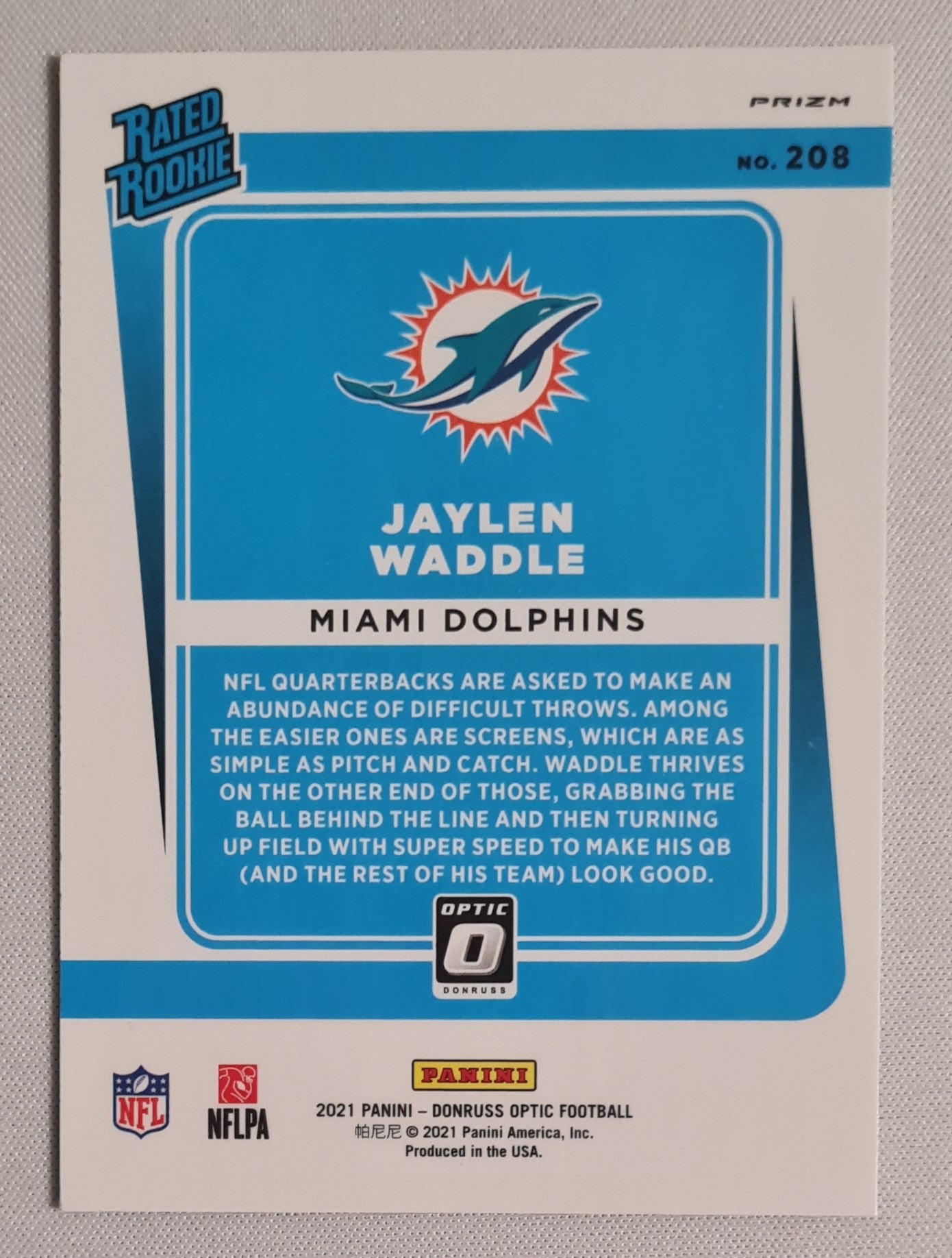 2021 Panini Donruss Optic Football Rated Rookie NFL Dolphins #208 Green Velocity
