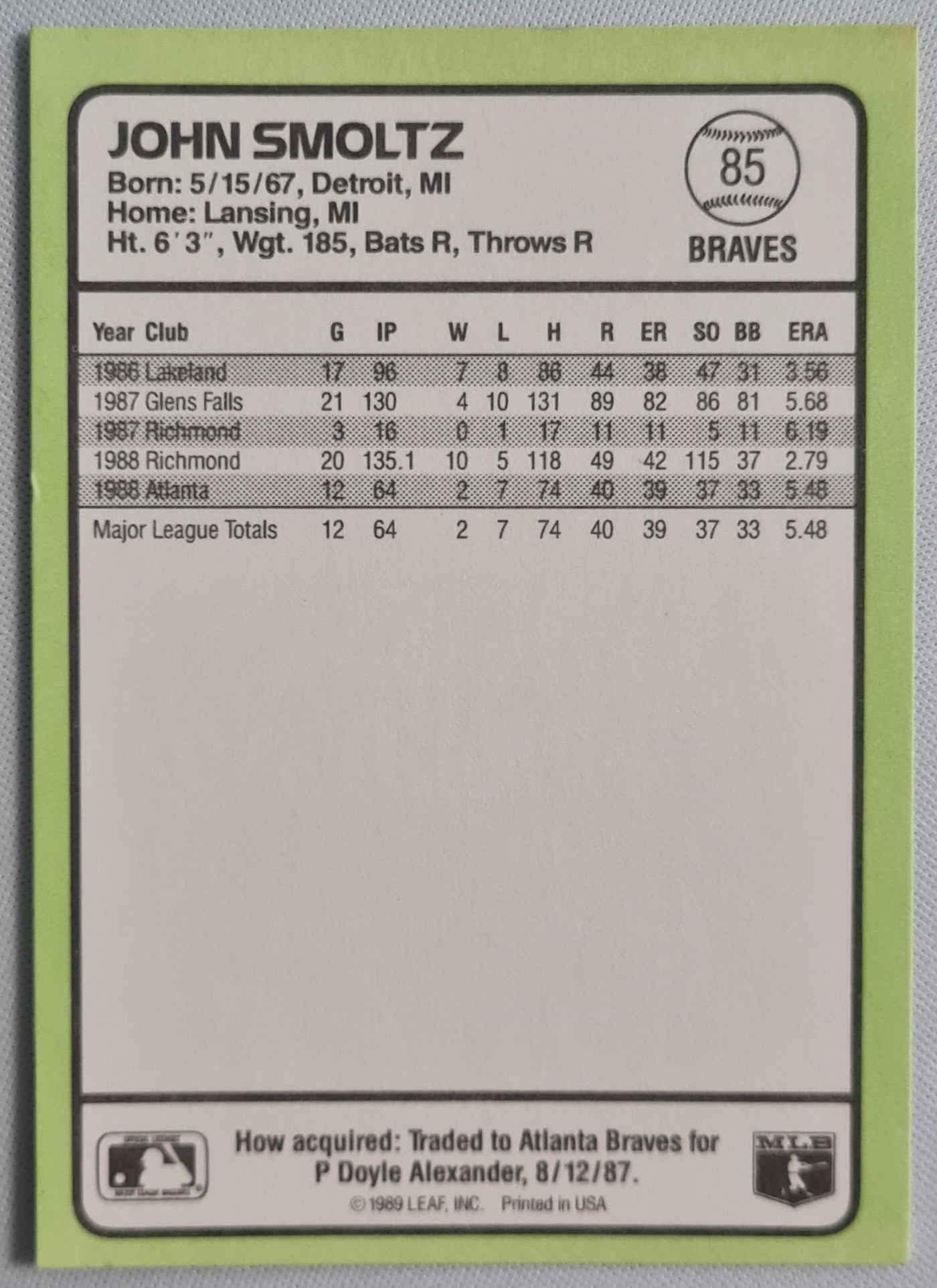 John Smoltz - 1989 Donruss Leaf inc - Atlanta Braves #85