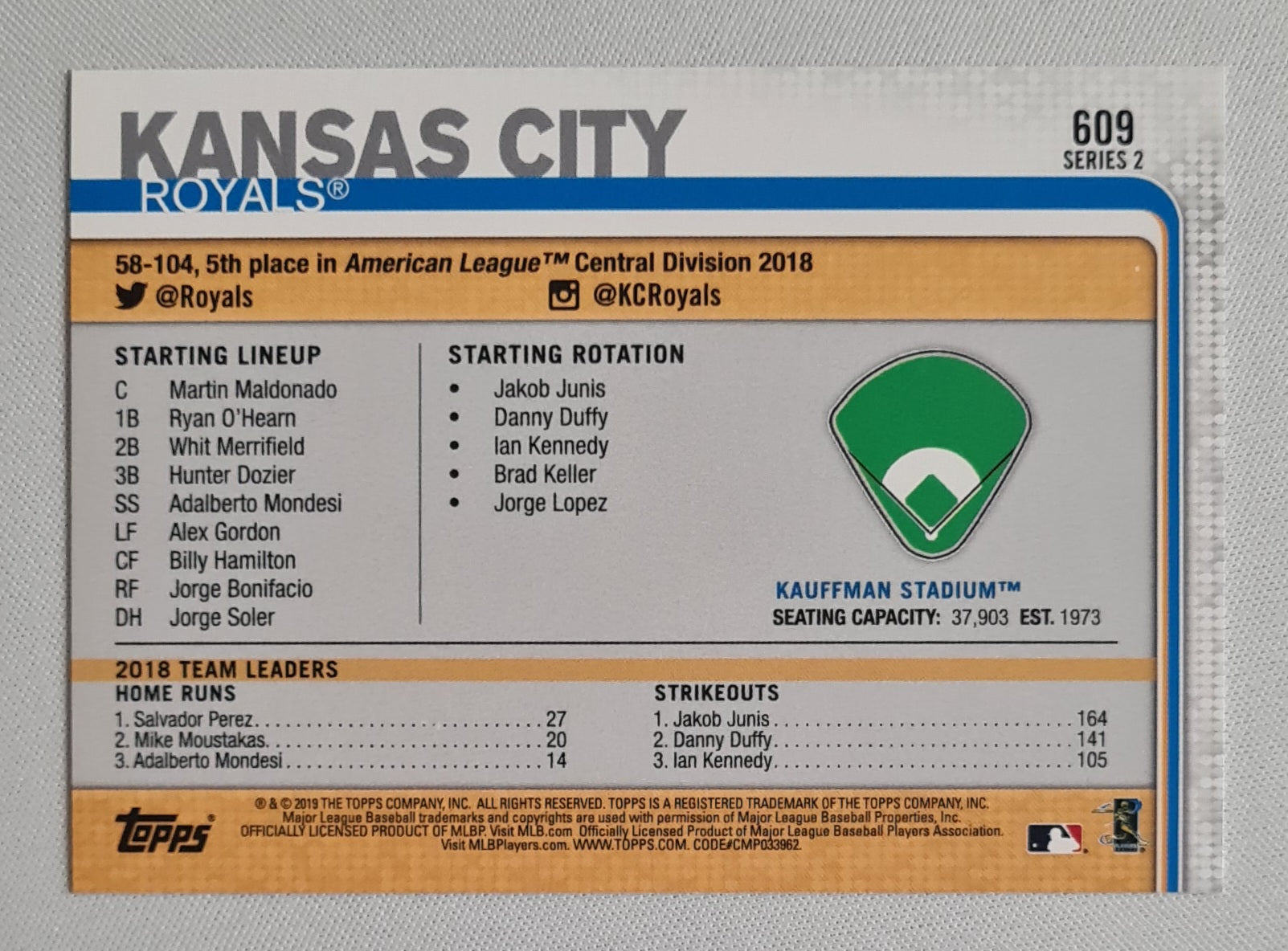 Kansas City Royals - 2019 Topps MLB Baseball #609 Series 2